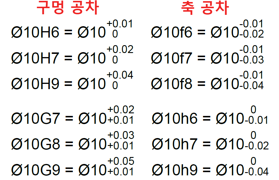정확한 공차값을 알기 원한다면 끼워맞춤공차표를 보는 것이 좋다.