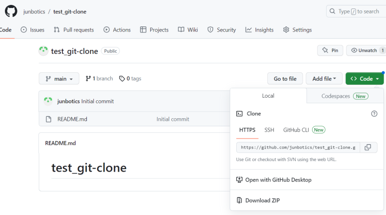 $ git clone https://github.com/junbotics/test_git-clone.git
