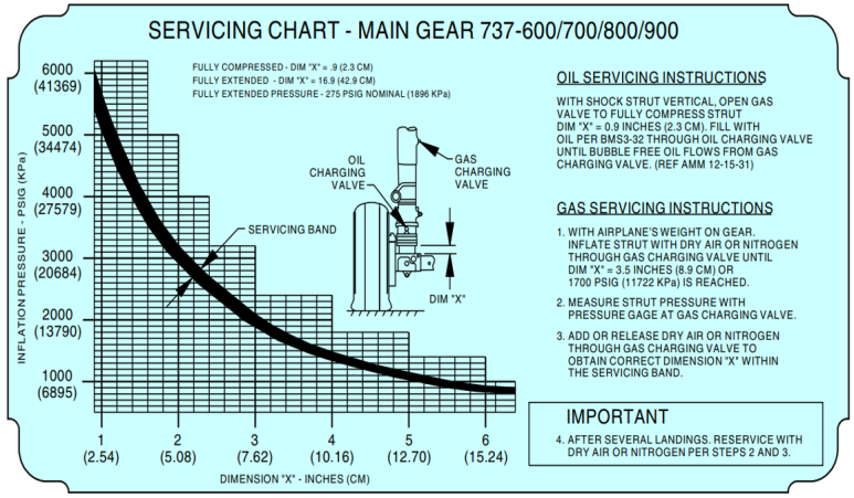 - 길이가 규정값 이내에 들지 않으면 L/G wheel well 내부 부착된 Servicing Chart를 참 고해 규정값 이내로 맞춰준다