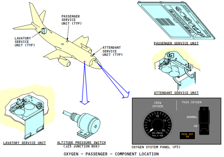 - 산소공급 : Passenger Cabin(PSU), Attendant station(ASU), Lavatory(LSU)