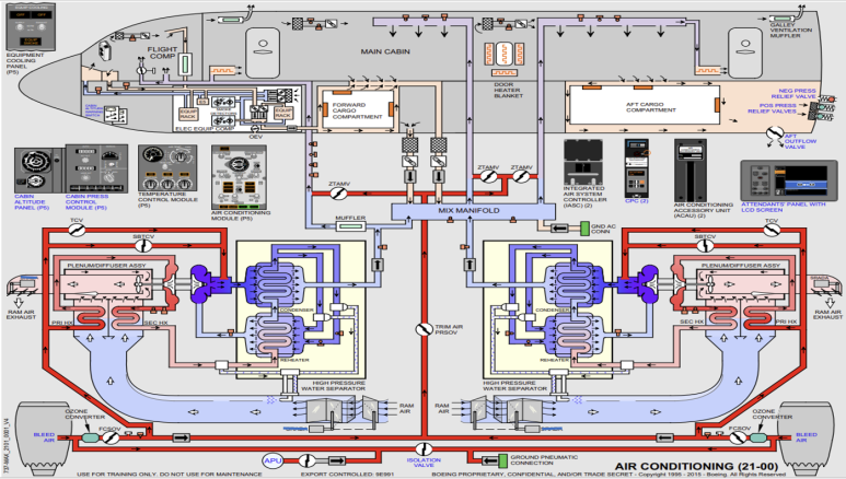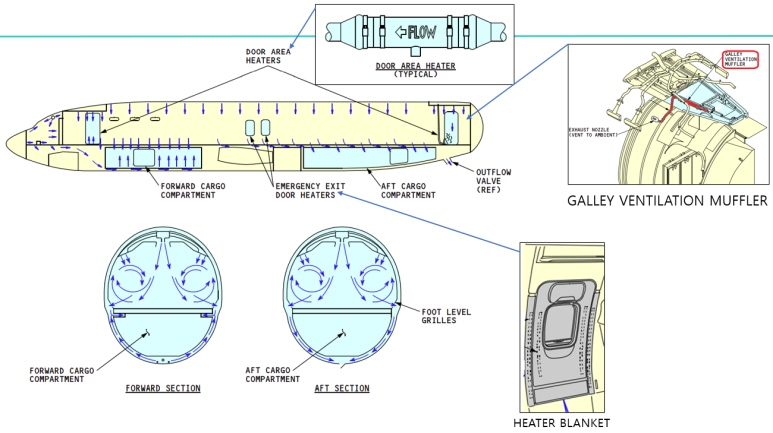 - Cargo door(FWD, AFT) : Equipment cooling exhaust, Passenger air로 heating