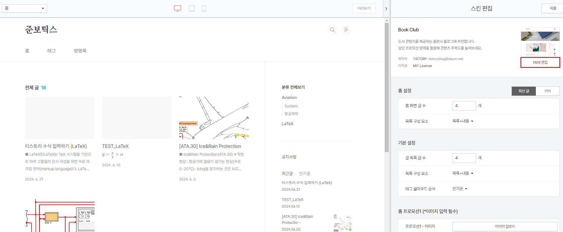 [관리] → [꾸미기] → [스킨 편집] 클릭