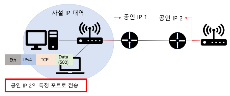 사설 IP 대역의 컴퓨터가 보이지 않는 네트워크 대역의 컴퓨터와 통신하고 싶다면, 포트 포워딩을 이용한다.