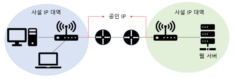 사설 IP 대역들이 통신할 때 공유기에 할당된 공인 IP로 변경되어 통신한다.