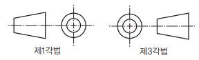 제1상한 공간 안에 물체를 넣고 투상하며, 투상면의 앞쪽에 물체를 놓는다.