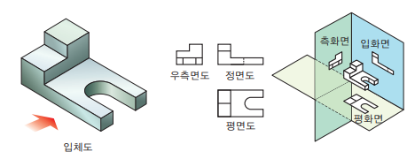 물체의 형상, 기능 등을 가장 정확하고 뚜렷하게 나타낼 수 있는 방향에서 그린 그림을 정면도라고 하며, 정면도를 기준으로 물체를 보는 방향에 따라 투상도를 그린다.