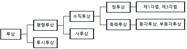 광선을 어떤 물체에 비추어 하나의 평면에 맺히는 형태로서 형상, 크기, 위치 등을 일정한 법칙에 따라 표시하는 도법을 투상법(projection)이라 한다. 제품을 제작하기 위해 평면에 모양을 제도하기 위한 방법으로 정투상법을 많이 사용한다.